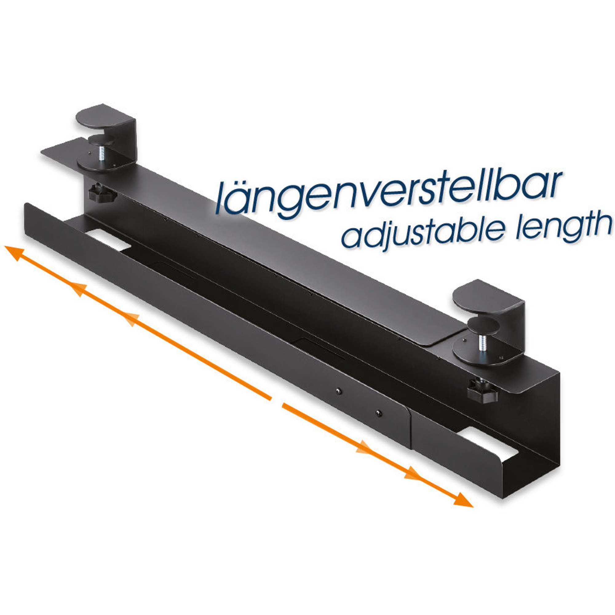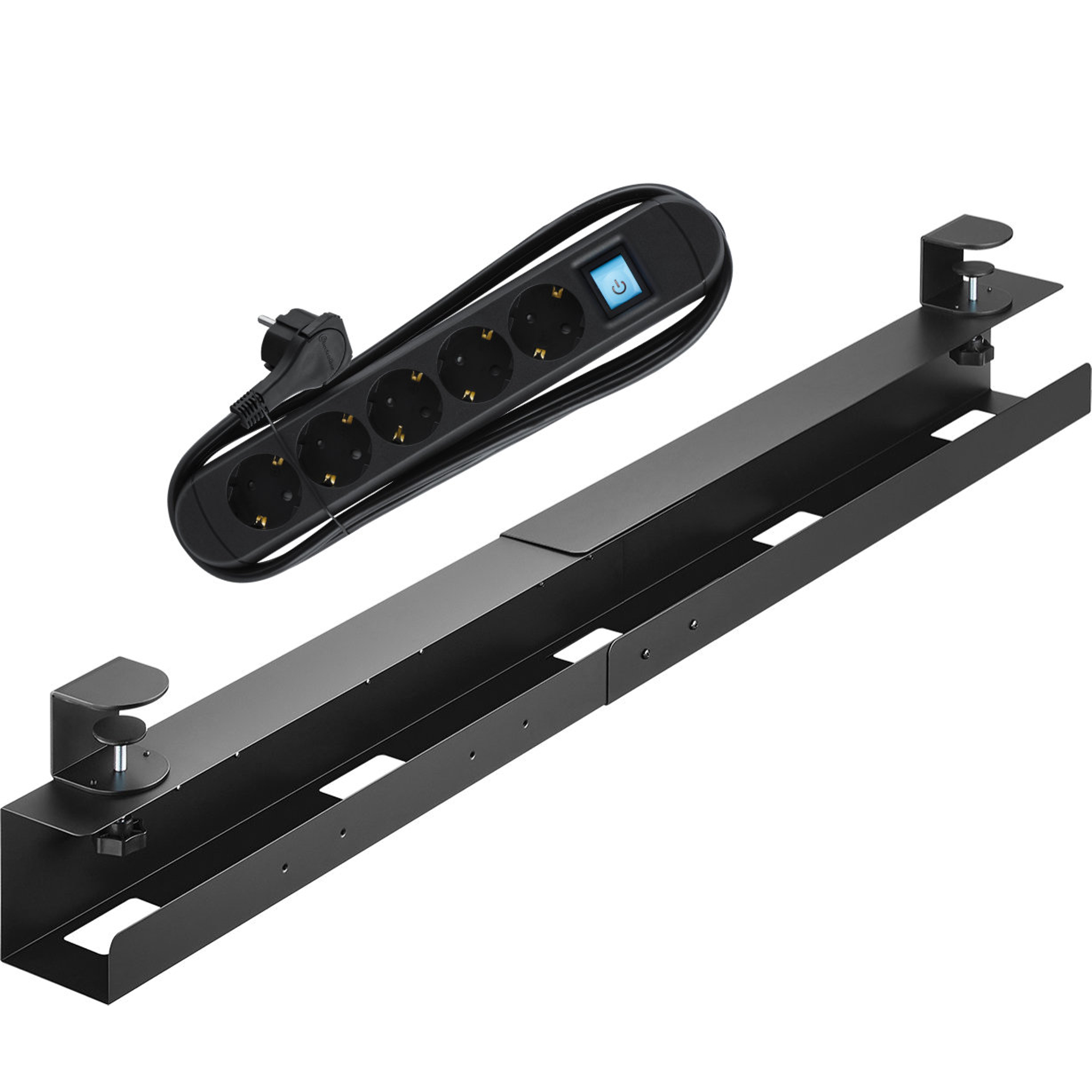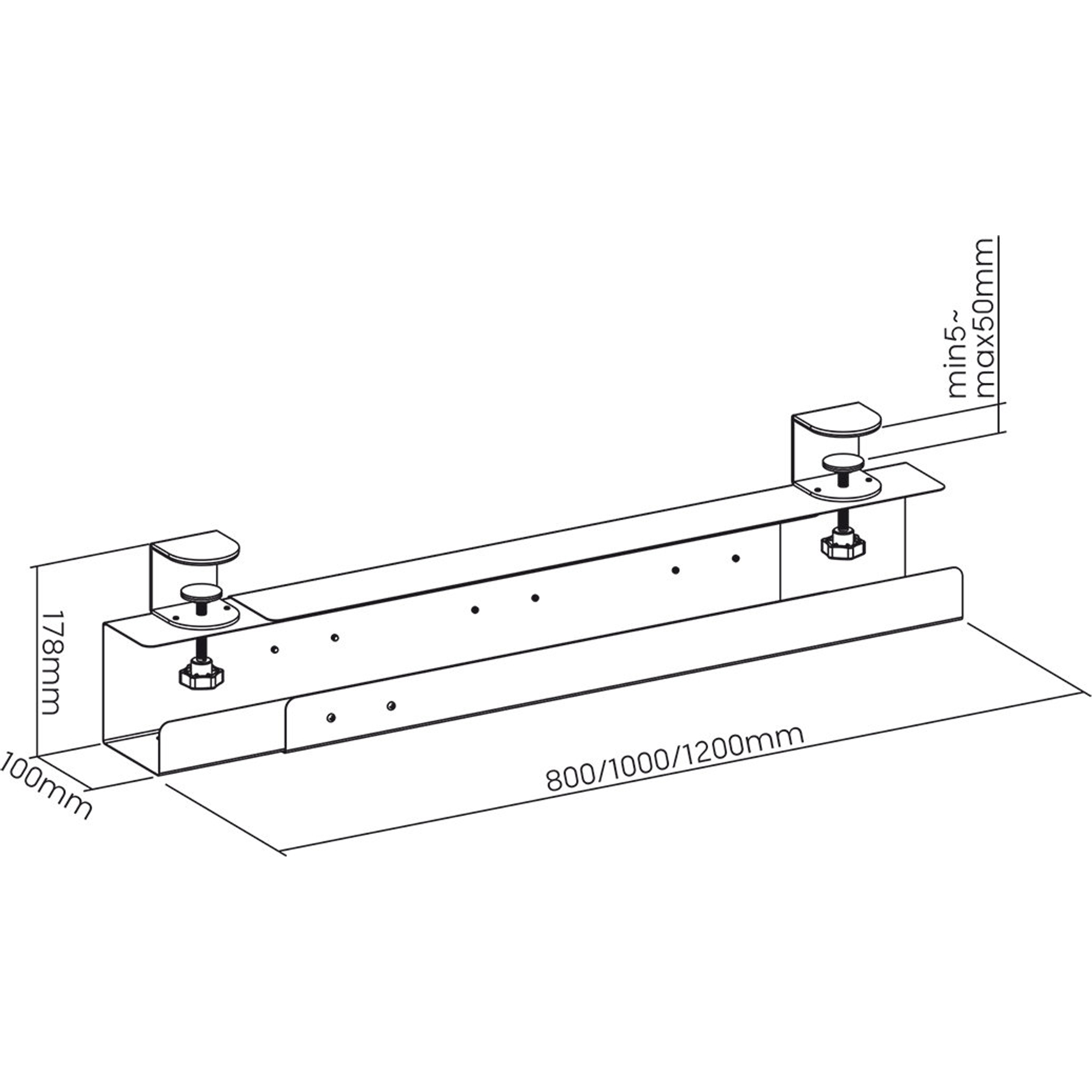 Puoi scegliere tra diverse lunghezze: 800, 1000 o 1200 mm - a seconda della larghezza della tua scrivania e del bisogno di prese. In questo modo la staffa si adatta perfettamente all'ambiente di lavoro e ti offre spazio sufficiente per ciabatte e alimentatori.