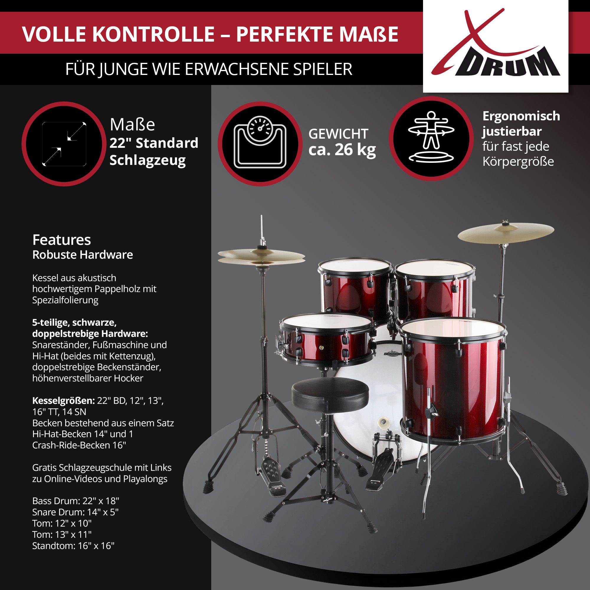 - Kesselgrößen: 22" BD, 12", 13", 16" TT, 14 SN