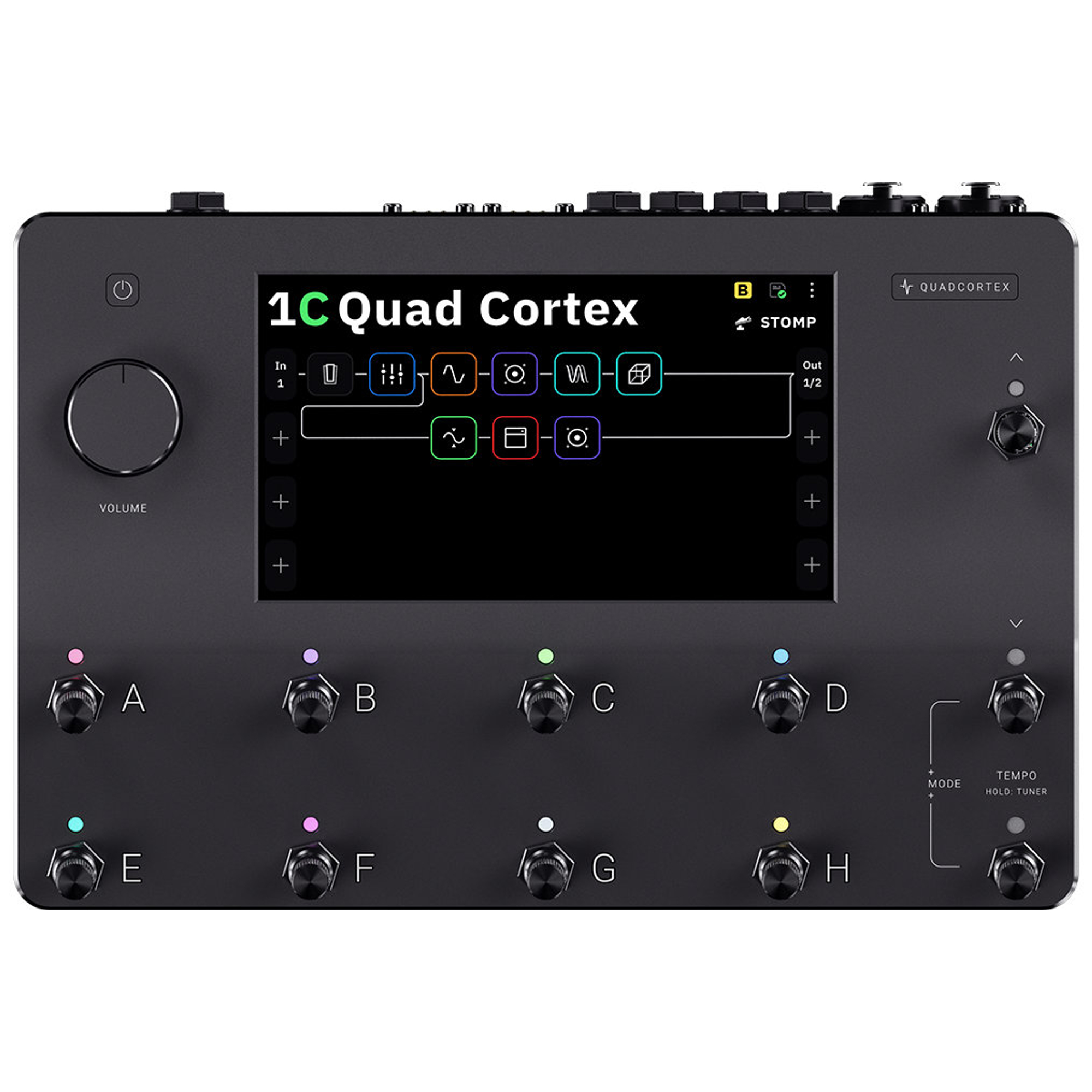 Mit seinem riesigen 7-Zoll-Multitouch-Display ist der Quad Cortex unglaublich einfach zu bedienen. Erstellen Sie mühelos selbst die komplexesten Signalwege.