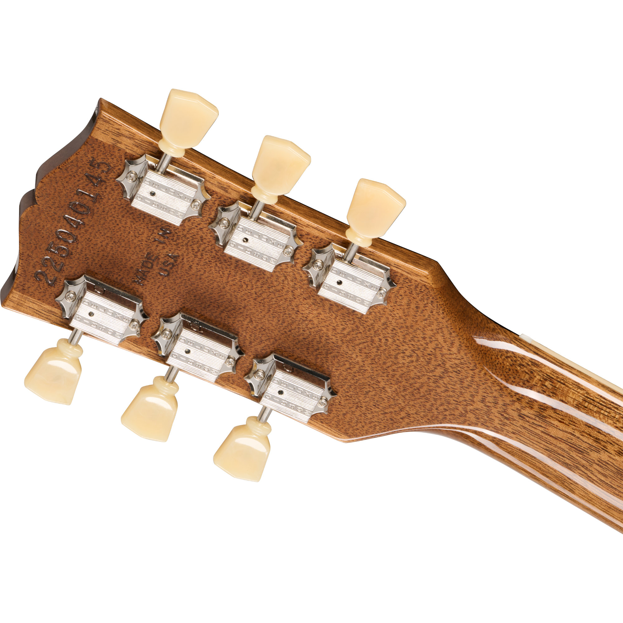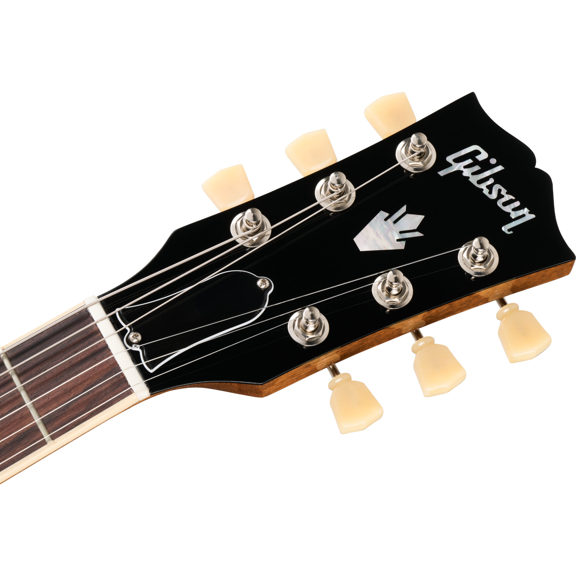 Der Korpus der ES-335 besteht aus Ahorn/Pappel/Ahorn-Lagen für Decke, Boden und Zargen. In Kombination mit einem massiven Ahorn-Mittelblock entsteht das erstaunliche Sustain, die Wärme und der resonante Ton, den Spieler von einem Semi-Hollowbody-Instrument erwarten. Der massive Ahorn-Mittelblock hilft auch bei der Kontrolle unerwünschter Rückkopplungen, die bei vollhohlen Gitarren häufig auftreten. Der Mahagonihals hat ein abgerundetes C-Profil, das äußerst bequem und leicht zu spielen ist. Er ist mit einem Palisandergriffbrett mit einem Radius von 12" versehen, das das Spielen von Akkorden erleichtert. Er ist mit Acryl-Punkt-Einlagen verziert und mit 22 Medium-Jumbo-Bünden ausgestattet. Ein Graph Tech-Sattel und Vintage Deluxe-Mechaniken mit Keystone-Knöpfen sorgen für eine stabile Stimmung, während die vernickelte ABR-1 Tune-O-Matic-Brücke und der Stop Bar-Saitenhalter aus Aluminium die Saiten am anderen Ende fest verankern, um das hervorragende Sustain zu erzeugen, für das die ES-335 berühmt ist.