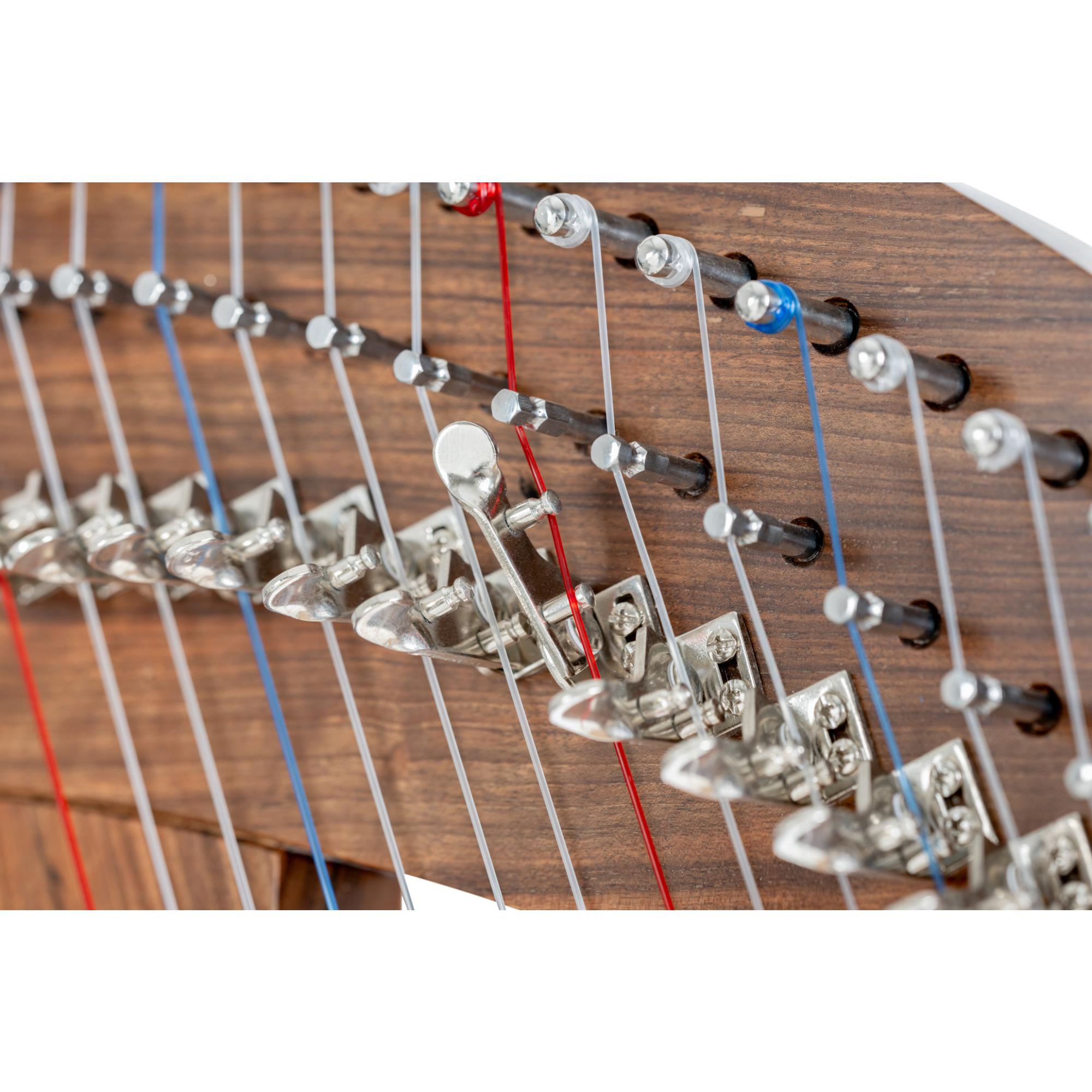 Die besondere Mechanik dieser Harfe macht sie zum vielseitigen Begleiter in verschiedenen Tonarten. Jede einzelne Saite ist mit einer Halbtonklappe ausgestattet, welche im angeklappten Zustand den Ton der jeweiligen Saite um einen Halbton erhöht. Somit ist man mit wenigen Handgriffen auch für jede Kreuztonart gerüstet.