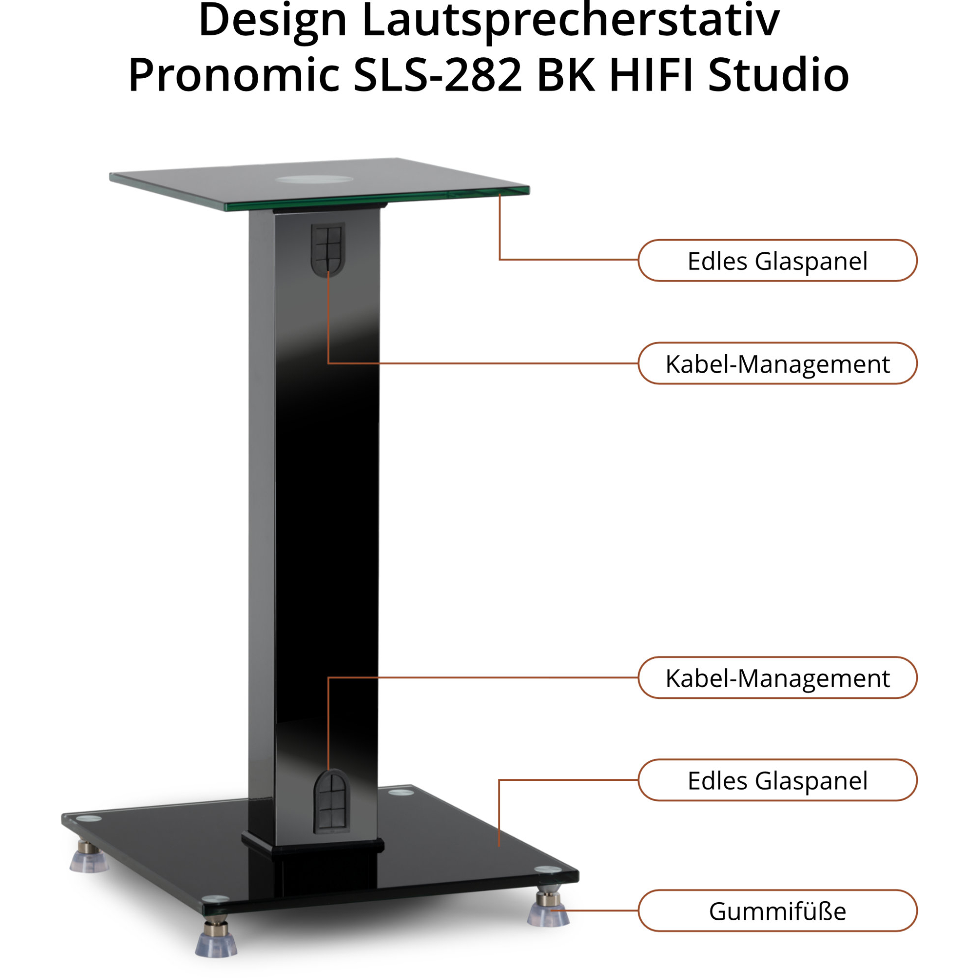 Die Pronomic SLS-282 Lautsprecher Stative vereinigen professionelle Features mit ansprechendem Design. Dank der schweren Standfüße aus schwarzem Glas und der 4 Dornenfüße liefern die Stative optimale Audioqualität.