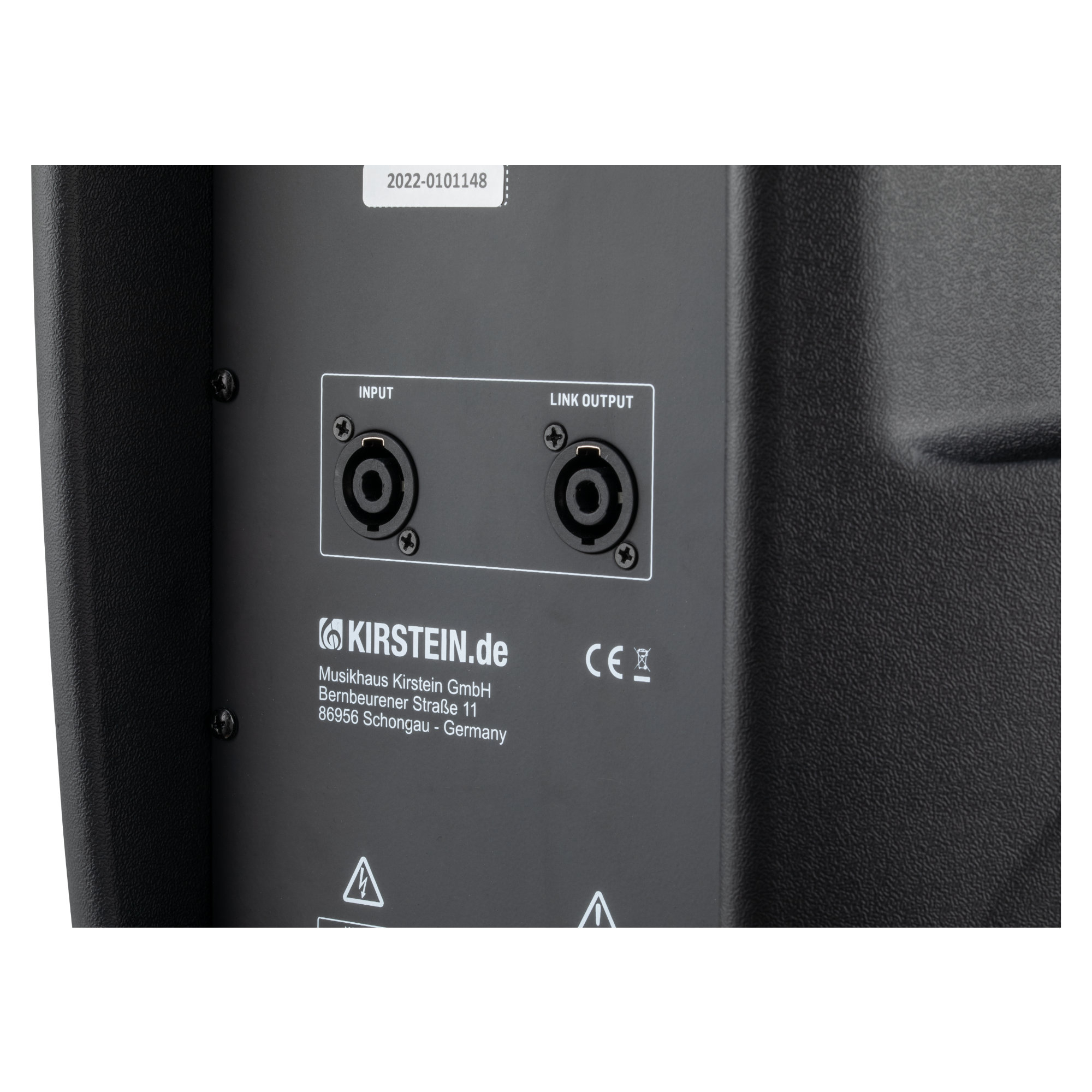 Die Rückseite besitzt einen Eingang sowie einen Ausgang - beides im Speaker Twist-Format. Für den Anschluss einer zweiten, passiven Box oder eines Monitors achte bitte auf den Gesamtwiderstand der beiden Lautsprecher.