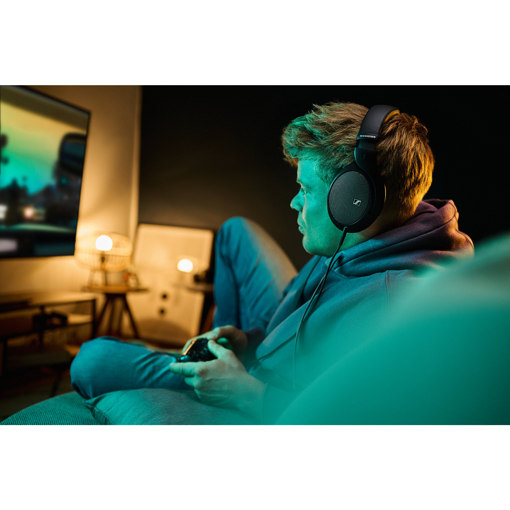 Das vollständig offene Design setzt auf ein neues Akustikgewebe, das die Schallwandler schützt und alle Hindernisse zwischen Hörer und Musik beseitigt. Die abgewinkelte Ausrichtung der Schallwandler sorgt für einen weitläufigen Sound, der den Hörer ins Zentrum des Klangspektrums rückt. Gamer profitieren von einer verzögerungsfreien räumlichen Wahrnehmung und Immersion, die bei professionellen Battles oder gelegentlichen Sessions zum Tragen kommt.