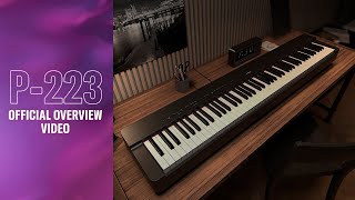 Die Position und der Winkel der Lautsprecher des P-223 wurden so platziert, dass sie den vom Resonanzboden und dem Deckel eines akustischen Flügels reflektierten Klang so präzise wie möglich nachbilden. Diese Platzierung bietet dem Spieler eine angenehme Klangwahrnehmung, wenn das P-223 vor einer Wand aufgestellt wird. Dieses Instrument wurde außerdem mit einer Tone Escapement Technologie ausgestattet, um den Klang klarer und besser hörbar zu machen und dem Spieler somit die beste akustische Balance zu bieten. Zusätzlich zu den Lautsprechern, die brillante und klare Töne in den mittleren und hohen Frequenzen und einen ausgeprägten Bass-Klang bieten, ist das P-223 zusätzlich mit Hochtönern ausgestattet, die einen exzellenten Klang in den Höhen erzeugen.