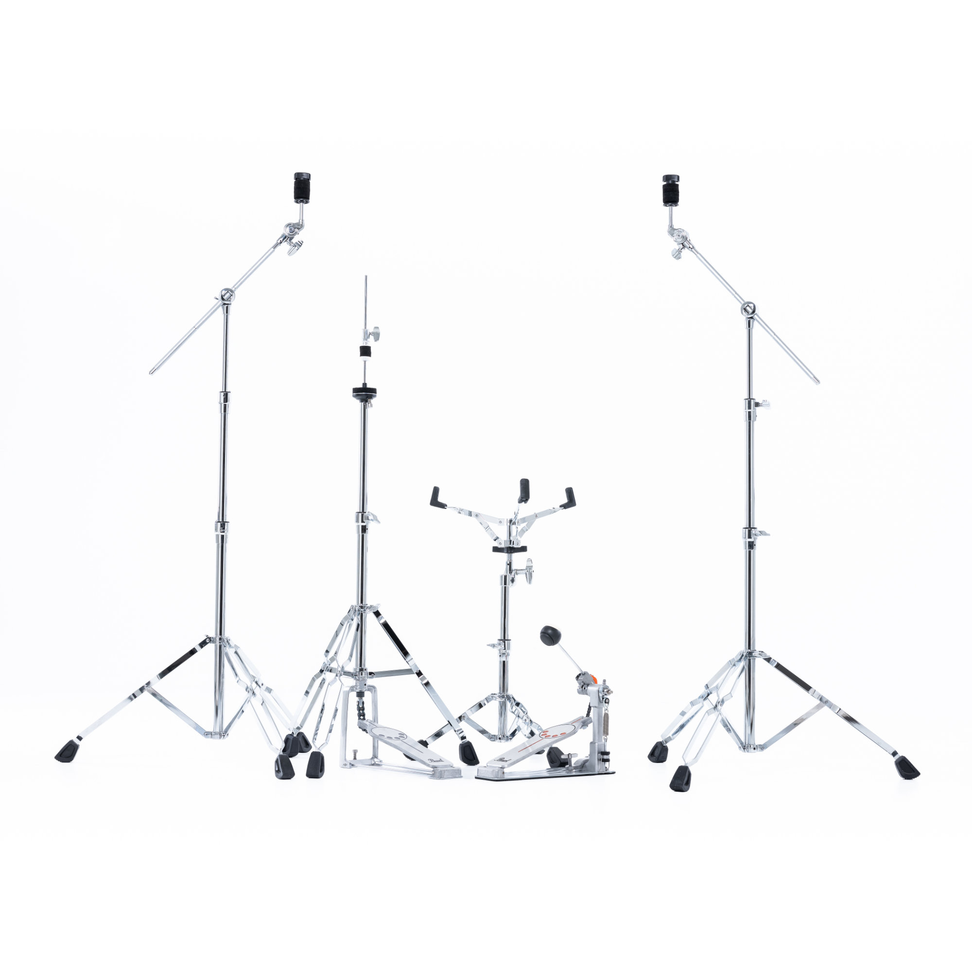 I supporti per piatti BC-830 a braccio e il supporto rullante S-830 sono completamente regolabili. I supporti per piatti possono essere regolati con precisione grazie ai tilt Uni-Lock. La macchina hi-hat H-830 con gambe rotanti è perfettamente predisposta per l’uso di pedali double bass. Tutti i supporti sono naturalmente a doppio rinforzo per una maggiore stabilità. Il pedale P-930 combina lo stile e la potenza del Demon Drive con i rulli intercambiabili della serie Eliminator.
