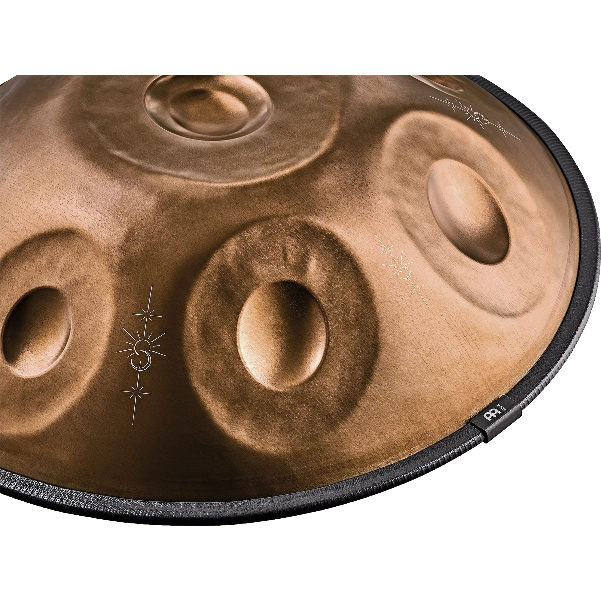 La Meinl Sonic Energy Sensory Handpan è realizzata a mano con la massima cura e precisione in acciaio inossidabile di alta qualità. In questo modo potrà ricavarne suoni celestiali e avvolgenti che riempiono lo spazio. L'attrattiva finitura Vintage Gold si integra armoniosamente nel complesso e attira l'attenzione già prima di suonare.