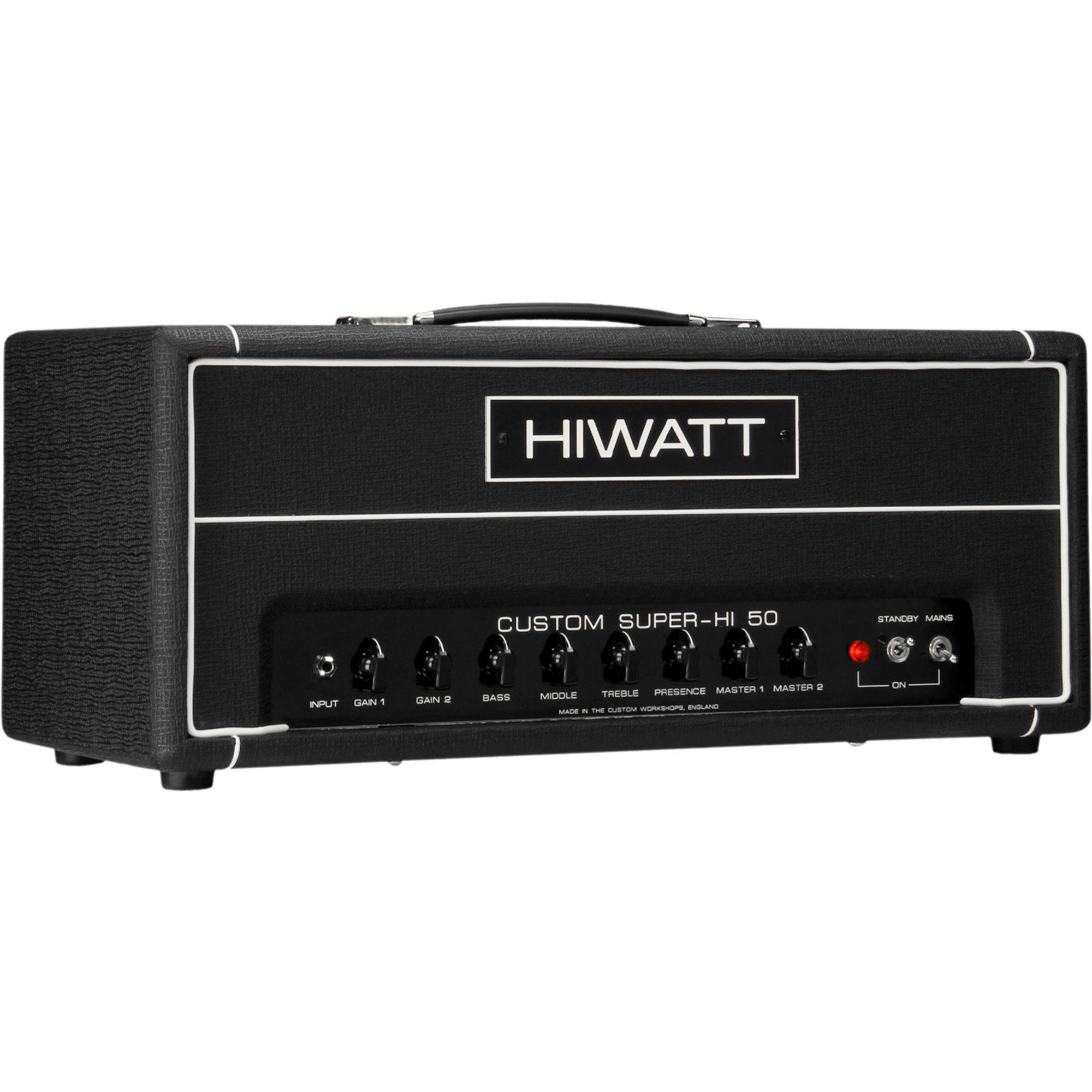 Il Super-Hi 50 è essenzialmente un Hiwatt classico e un amplificatore Hi-Gain caldo e aggressivo, sviluppato dal professionista dell'heavy metal Mike Fortin. Chiarezza, punch, definizione delle corde e bassi compatti sono al centro del progetto di questo amplificatore, perciò è particolarmente adatto ai Drop-Tunings e agli strumenti con estensione tonale ampliata.