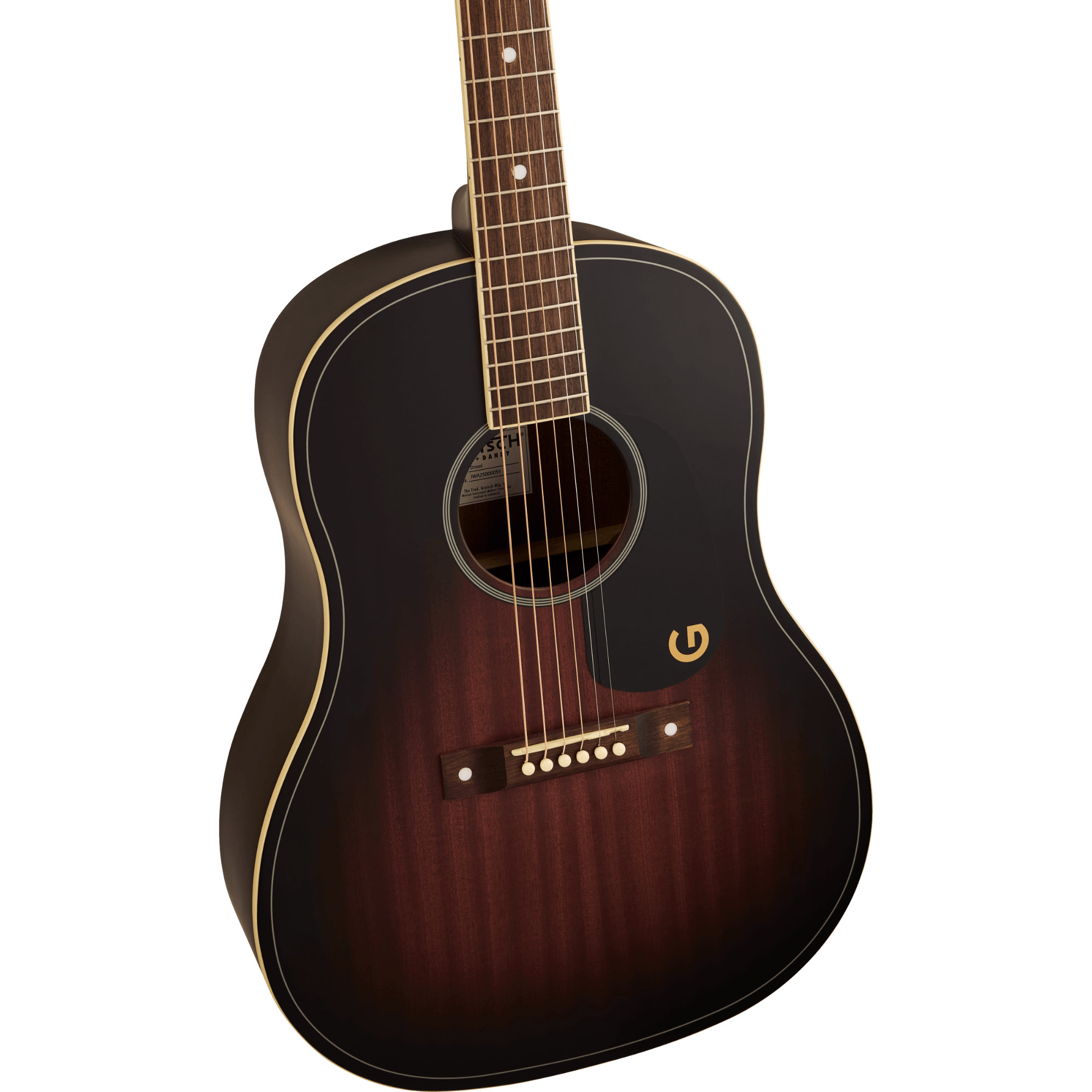 La cassa con steccatura a X è realizzata in laminati selezionati e leggeri, offrendo un equilibrio ottimale tra il timbro legnoso vintage e una robustezza affidabile, mentre il manico a profilo a "C" regala una presa accogliente per lunghe sessioni di ispirazione. Dettagli contemporanei come il ponte chiodato in stile vintage, il battipenna con grafica a "G", le strisce decorative verniciate, le meccaniche open-gear 3-on-a-plate e gli intarsi a punto sovradimensionati sulla tastiera definiscono un carattere nostalgico perfetto per ogni barbecue o festival musicale.