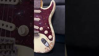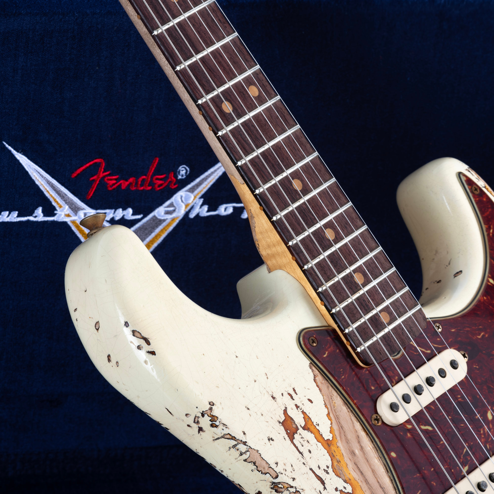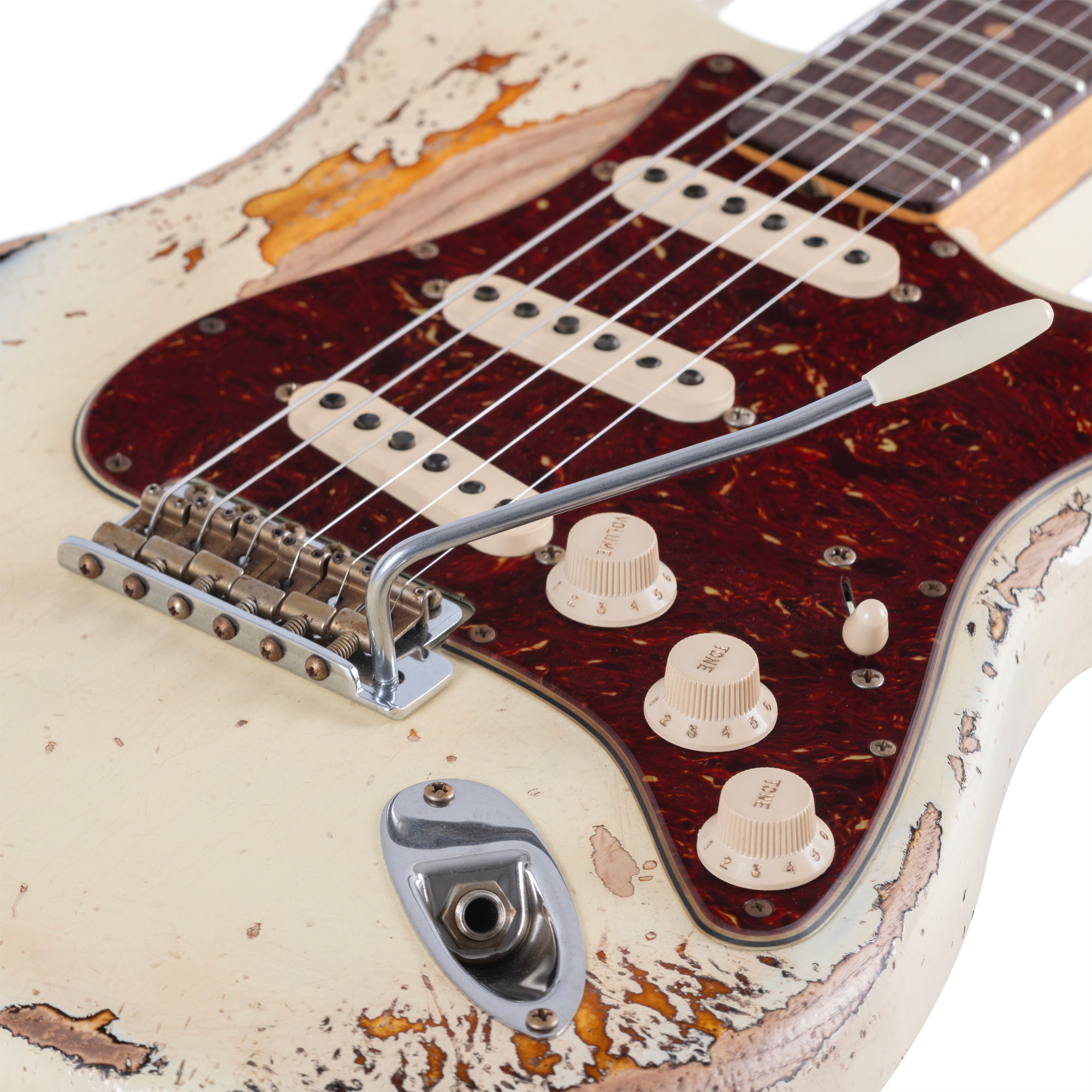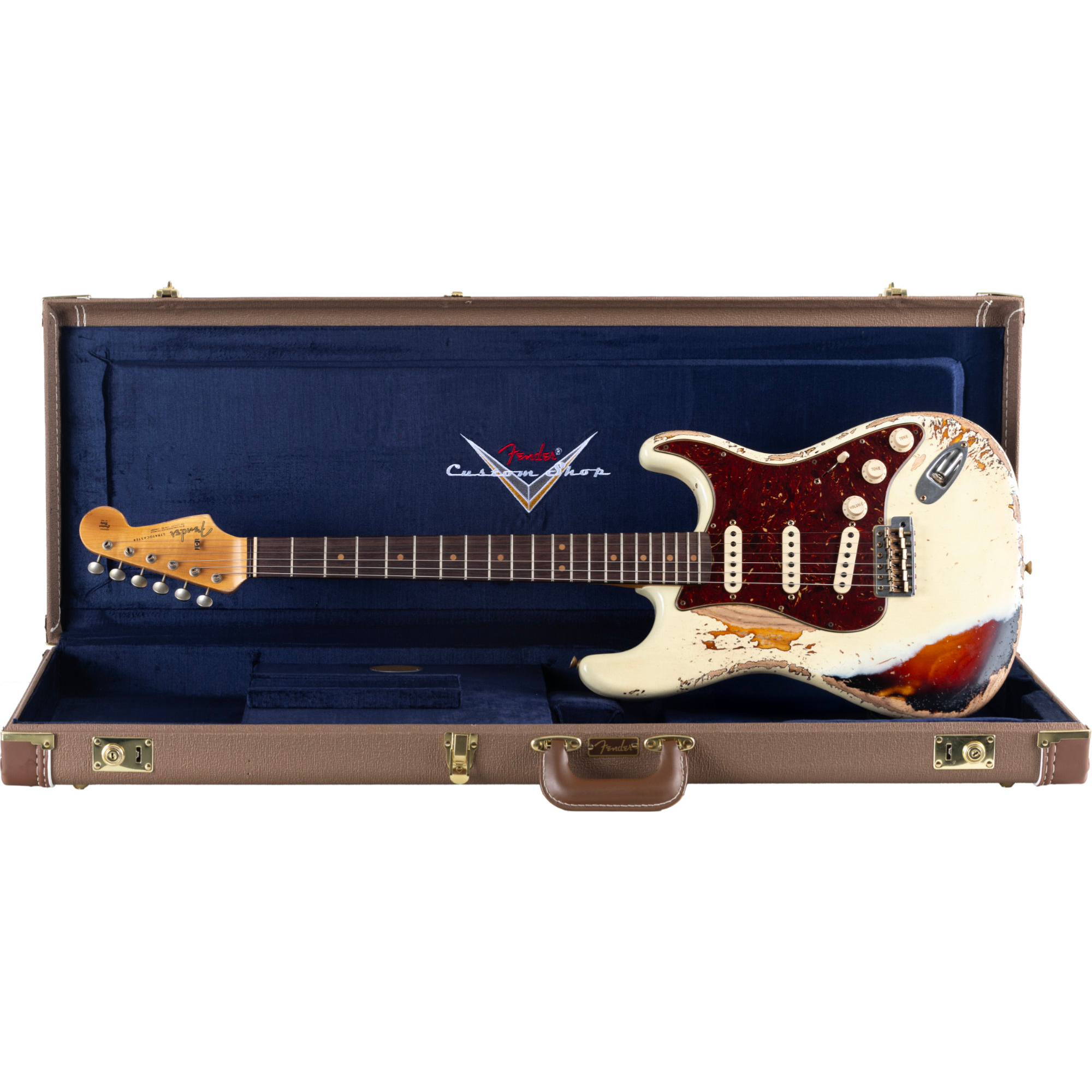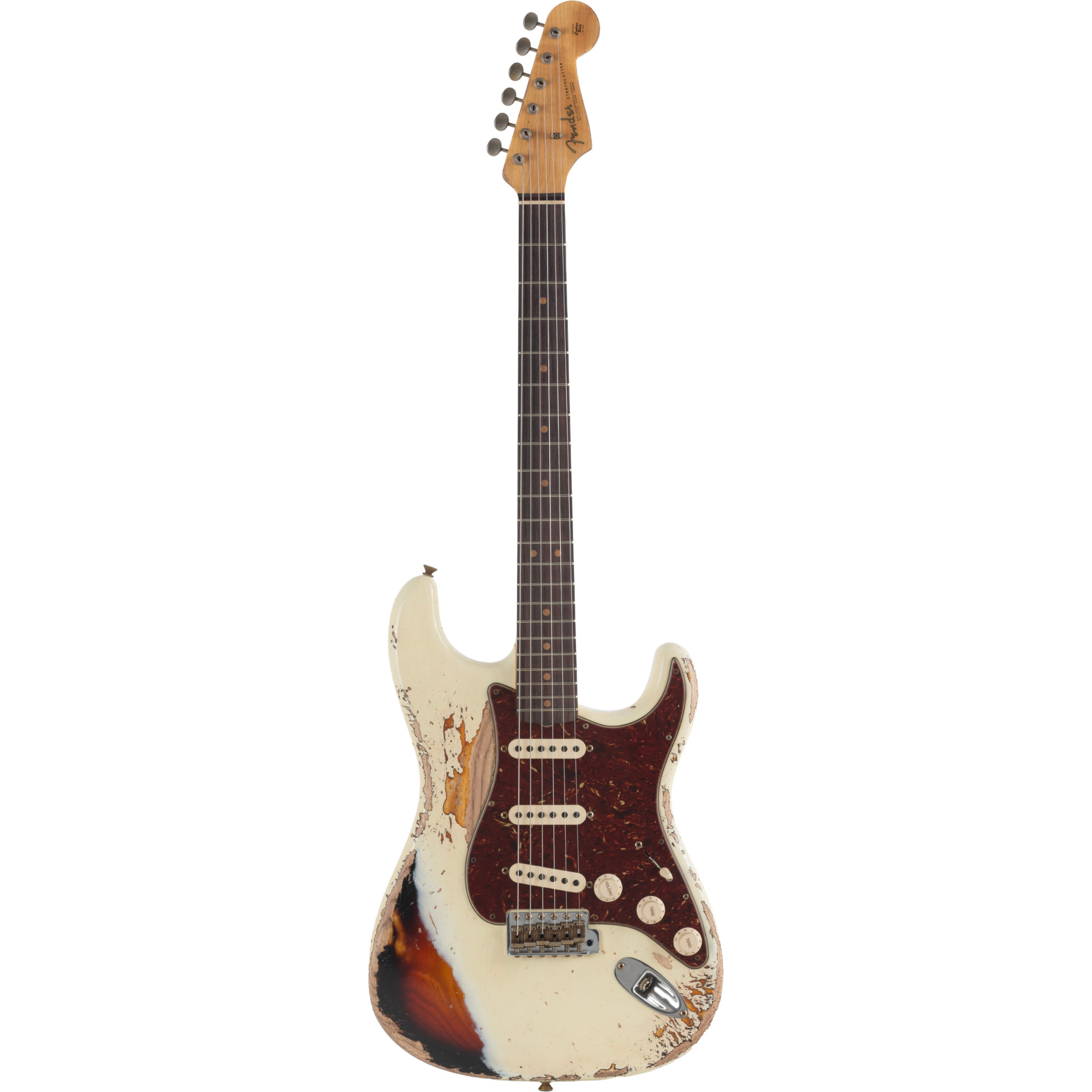 - 1 x Fender Custom Shop 1963 Super Heavy Relic Stratocaster chitarra elettrica Super Faded Aged Vintage White over 3-Tone-Sunburst