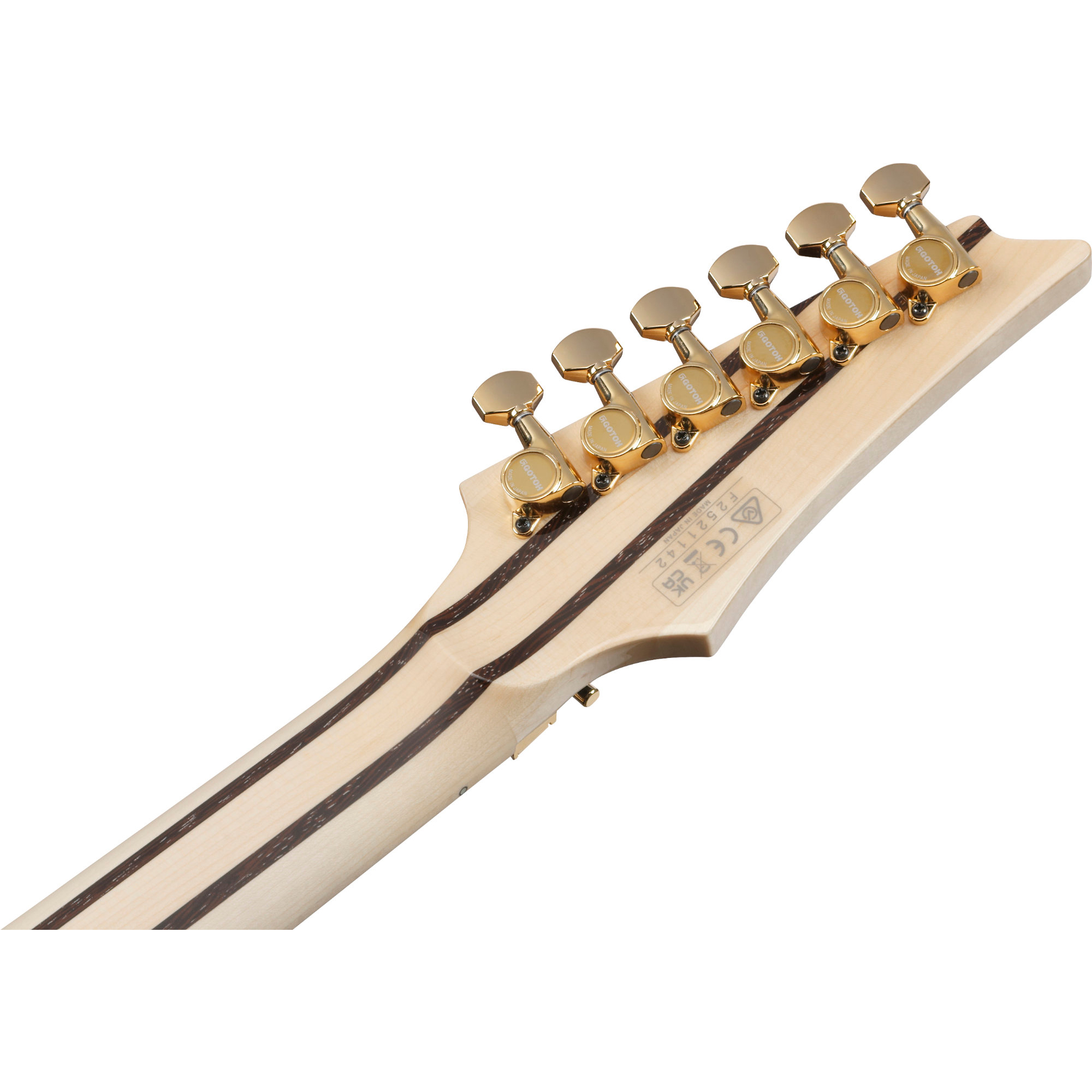 Il modello RG8565R è dotato di un manico Super Wizard in acero/wenge a cinque parti, di una tastiera in palissandro e di una tavola in acero esotico su un corpo in mogano africano. Completano il set i pickup DiMarzio Air Norton S / The Tone Zone e un ponte Edge Tremolo.