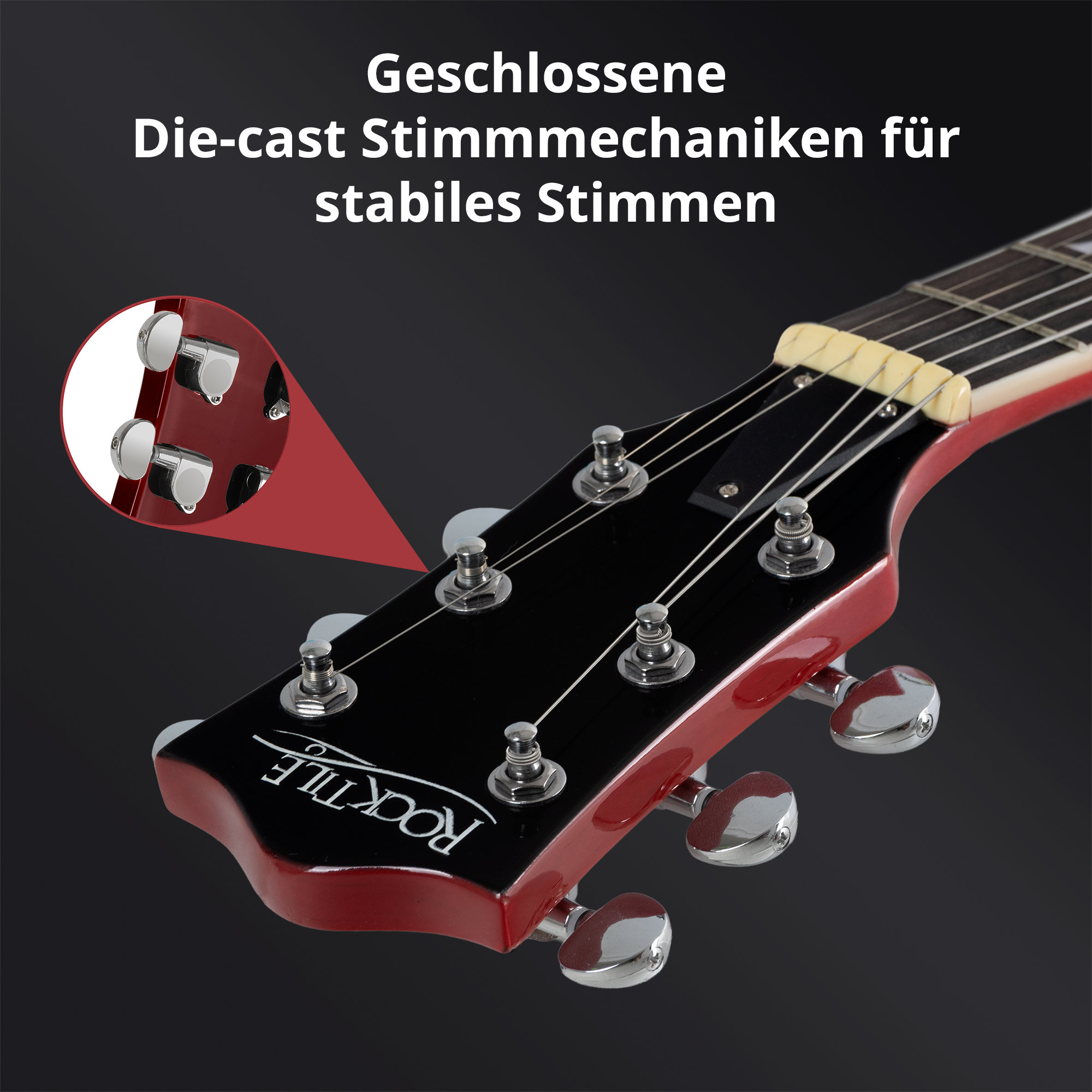 La chitarra elettrica Standard amplia la serie di chitarre di alta qualità Rocktile con un nuovo modello! Non solo nell’aspetto ricorda il suo grande modello, ma anche la tecnologia di prima scelta è davvero convincente.