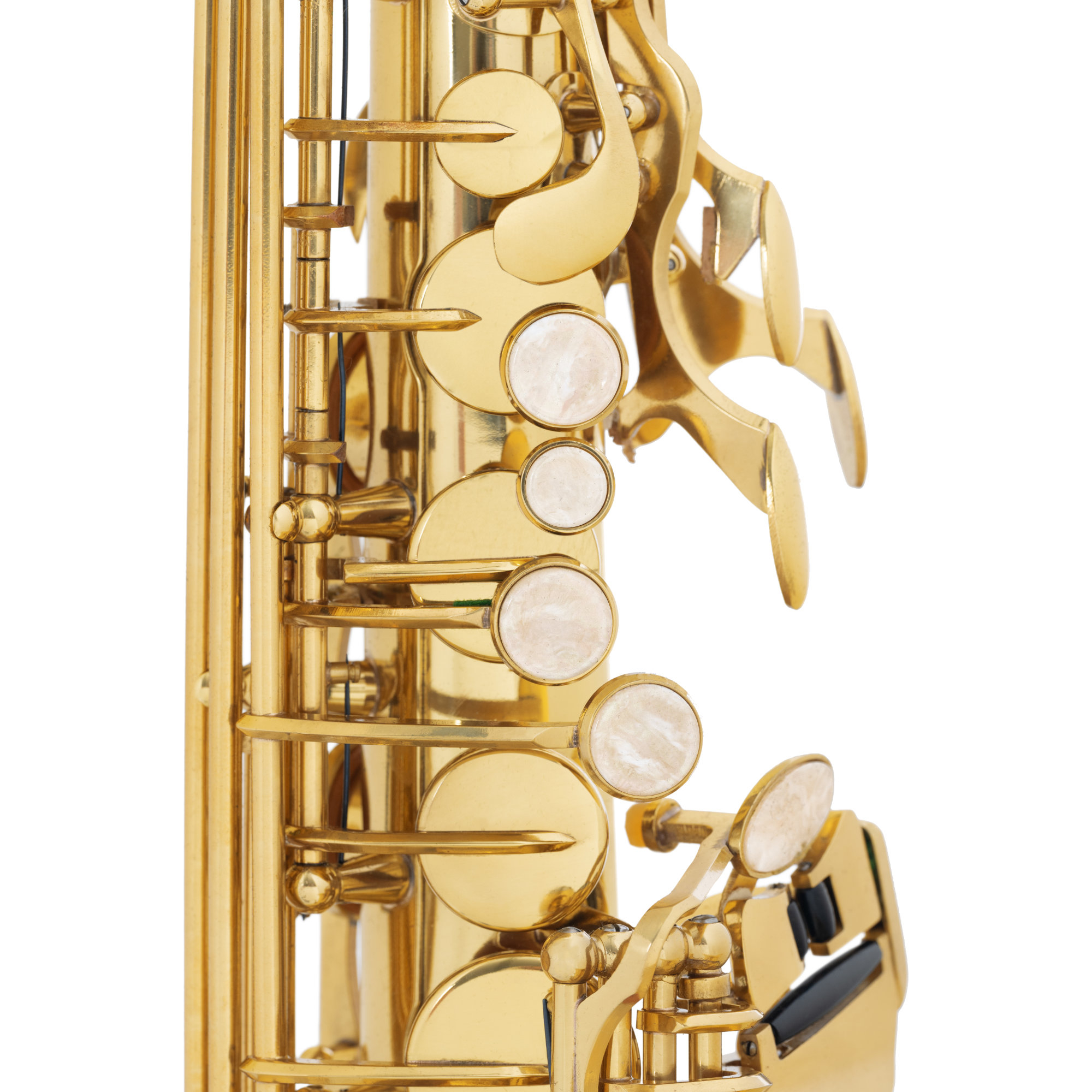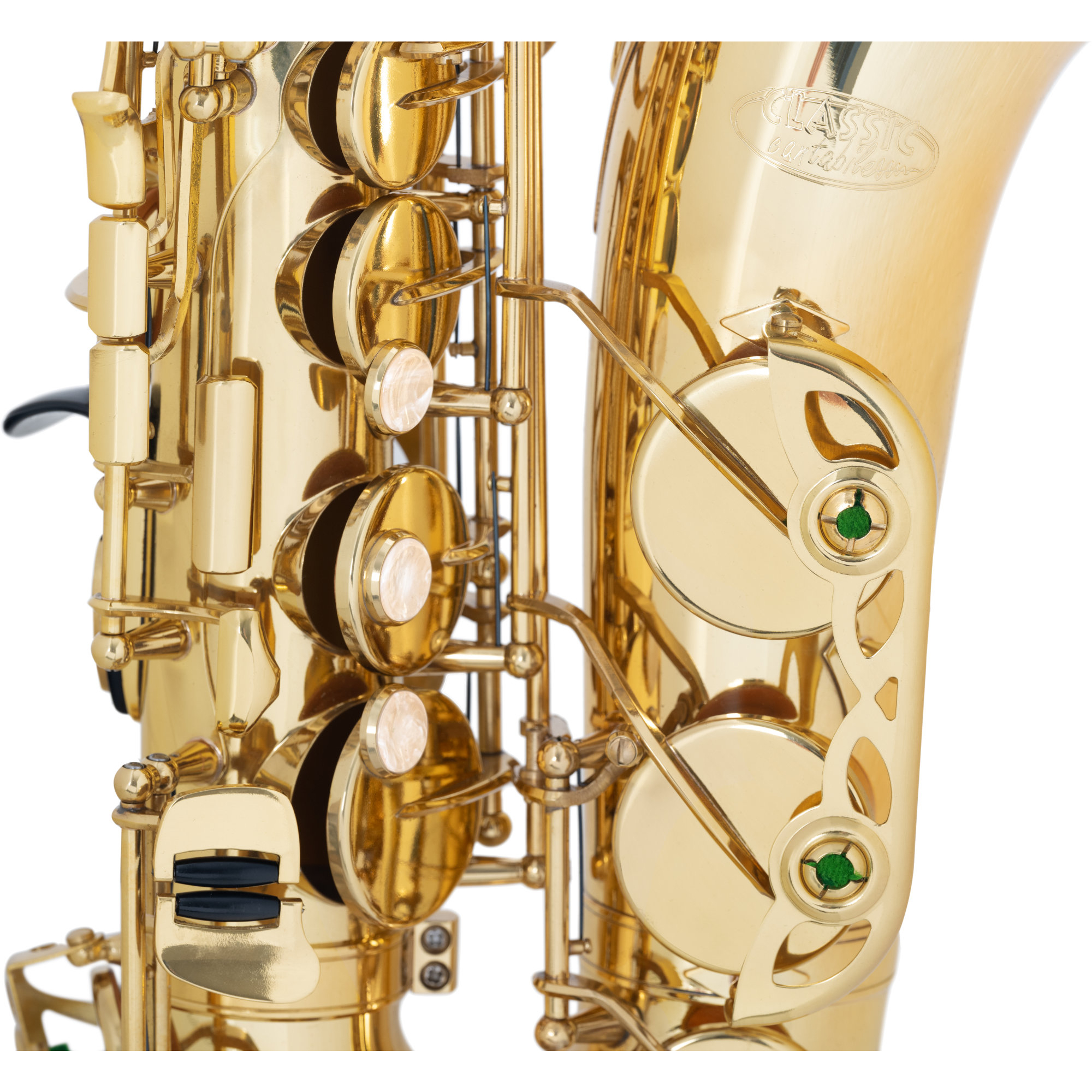 Auch optisch hat das Classic Cantabile AS-450 Alt-Saxophon richtig was zu bieten! Das Instrument besteht aus hochwertigem Messing und ist vollständig mit edlem Lack überzogen. Die Griffknöpfe bieten passend dazu eine elegante Perlmuttoptik und auf dem Schallstück findet sich eine feine Logo-Gravur.