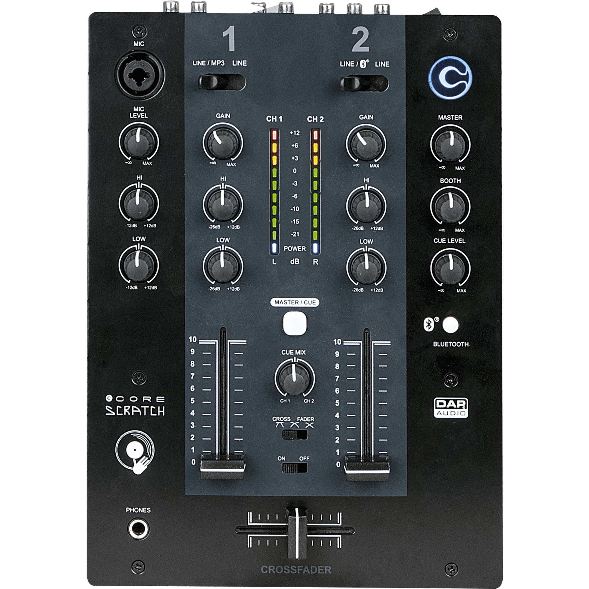 Il DAP CORE Scratch è un mixer DJ compatto e funzionale a 2 canali, progettato appositamente per DJ scratch, turntablism e setup da battle. Con il suo layout diretto, fader di alta qualità e controlli tonali precisi, ti offre il controllo necessario per tagli rapidi e transizioni creative. Grazie agli ingressi phono e line e all'ingresso microfono con funzione Talkover, il mixer è adatto sia ai classici setup in vinile sia alle moderne applicazioni digitali.