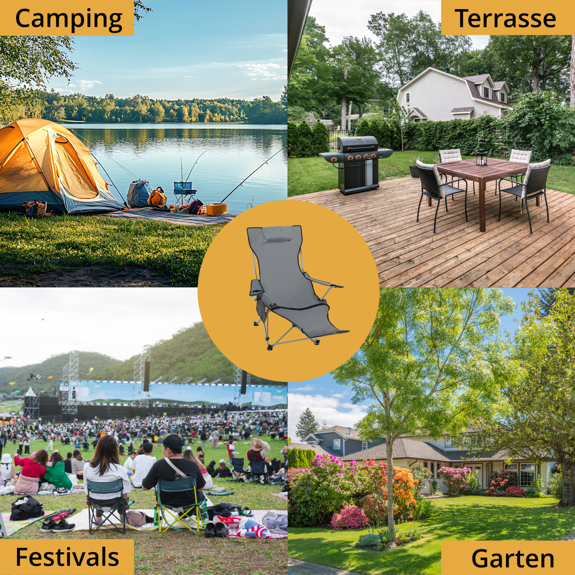 Sedia da campeggio pieghevole con poggiapiedi e schienale regolabile!