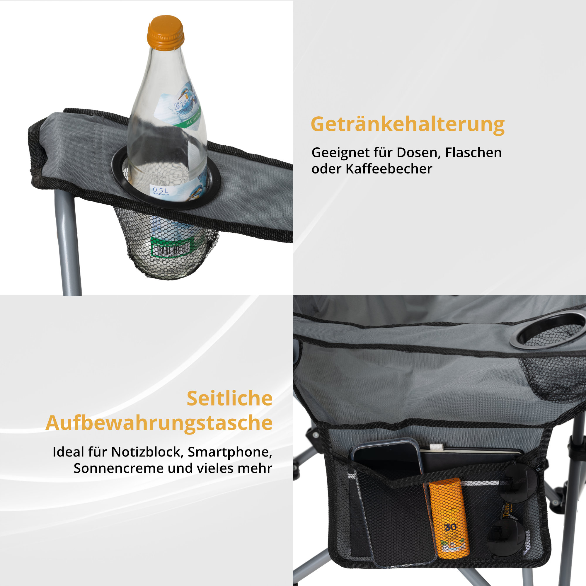 Renditi comodo - davvero comodo: con il poggiapiedi trasformi la tua poltrona da campeggio in un vero angolo di benessere, quasi come una chaise longue. Solo il tuo letto è meglio! E se preferisci sederti in modo classico? Nessun problema - il poggiapiedi si rimuove in un attimo e avrai una sedia da campeggio normale.