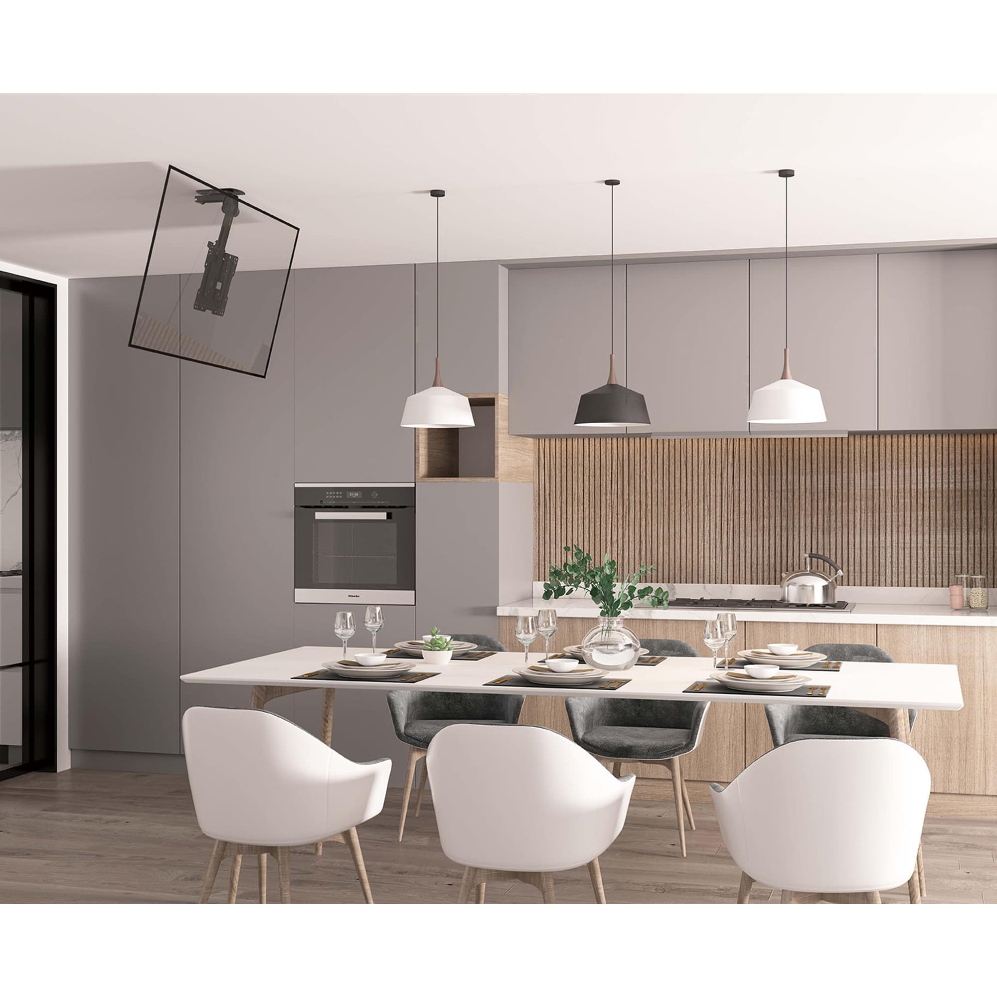 Con questo supporto a soffitto pieghevole avrai una soluzione flessibile e salvaspazio per fissare la tua TV in modo discreto sotto il soffitto o sotto un pensile. La staffa è molto regolabile e si presta perfettamente a stanze con poco spazio o soffitti inclinati.