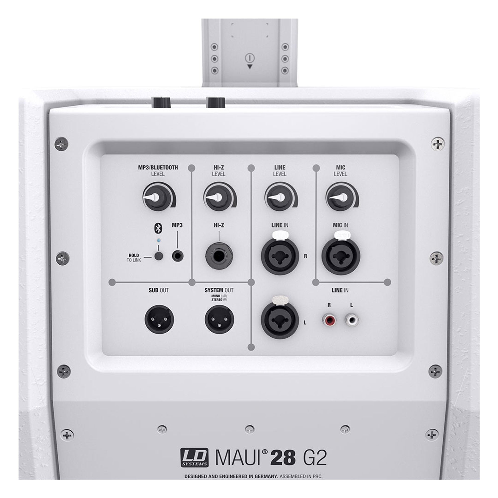 Mit dem integrierten 4-Kanal-Mixer, System-Presets zur Mono- oder Stereo-Konfiguration und Bluetooth Audio Streaming hast Du die volle Kontrolle über das System. Als Singer-Songwriter, Alleinunterhalter, DJ oder Musiker in einer kleinen Band wirst Du vom außergewöhnlichen Klang und der Transportfreundlichkeit der MAUI 28 G2 begeistert sein. Säule und Subwoofer lassen sich getrennt aufstellen, damit ist die Anlage extrem flexibel einsetzbar und zudem eine ausgezeichnete Wahl für Festinstallationen. Mit einer Auswahl an cleverem Transportzubehör und spezieller Montage-Hardware ist die MAUI 28 G2 eine bis in jedes Detail durchdachte Gesamtlösung.