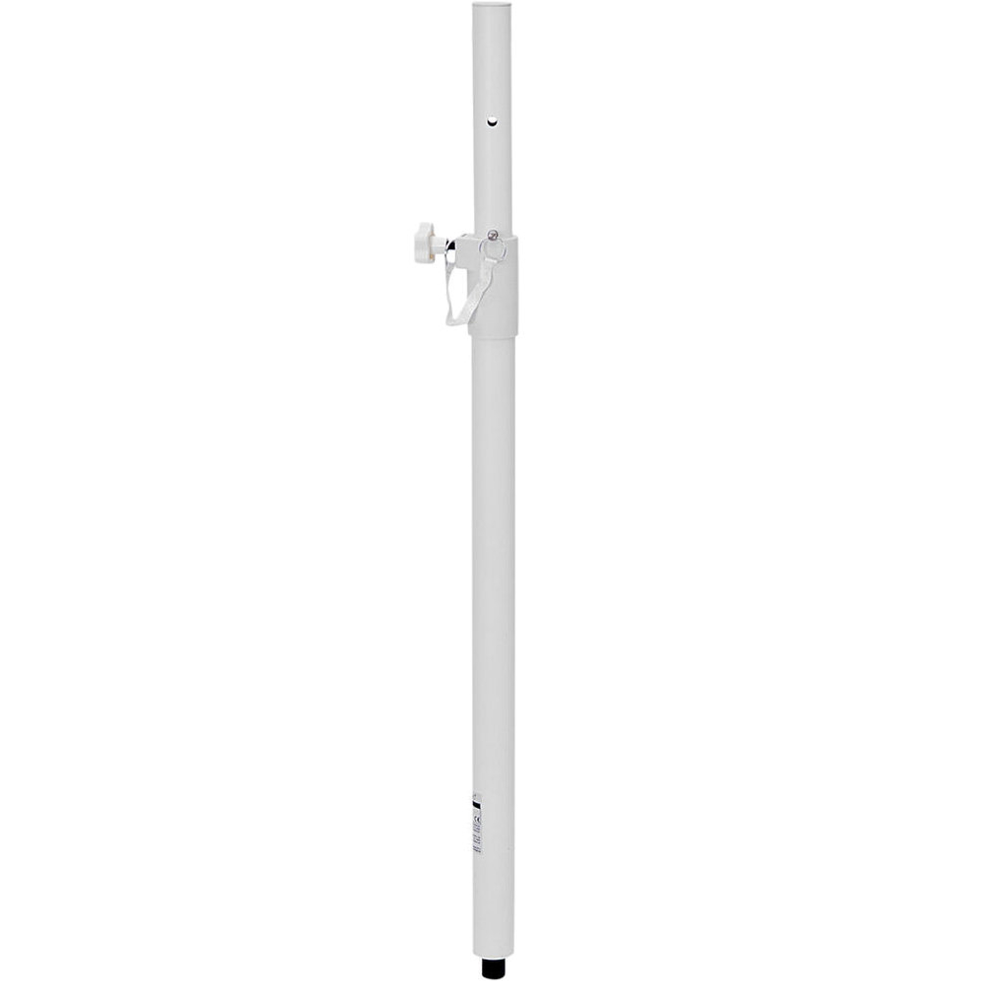 L'asta distanziale Omnitronic (bianca) collega subwoofer e top in modo affidabile: filetto M20, attacco da 35 mm, regolazione dell'altezza a scatti da 72 a 128 cm tramite perno di bloccaggio con vite di fissaggio, robusta costruzione in acciaio verniciato a polvere, carico massimo 30 kg. Così ottieni un collegamento pulito e antitorsione per il tuo sistema satellitare e un allineamento preciso dei top.