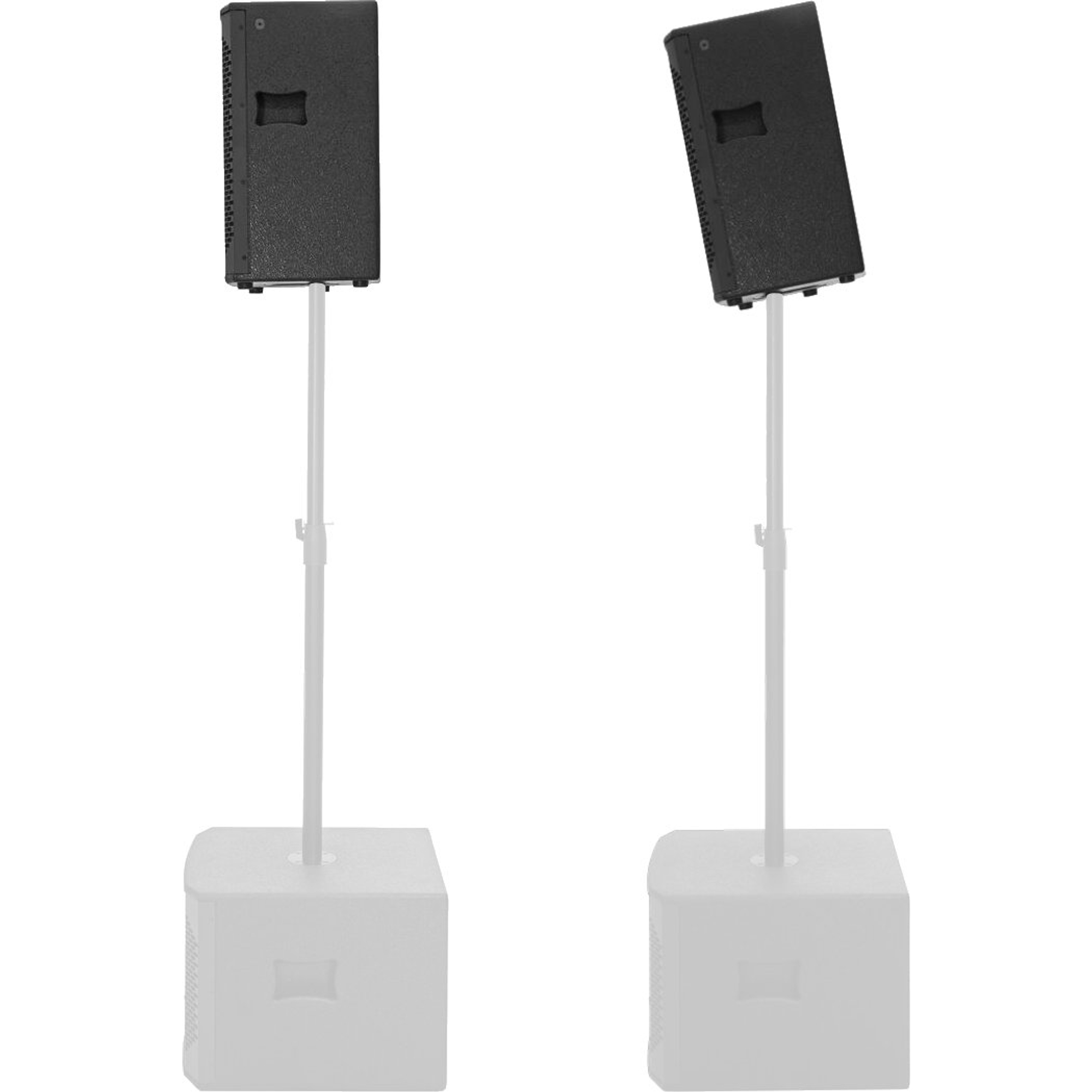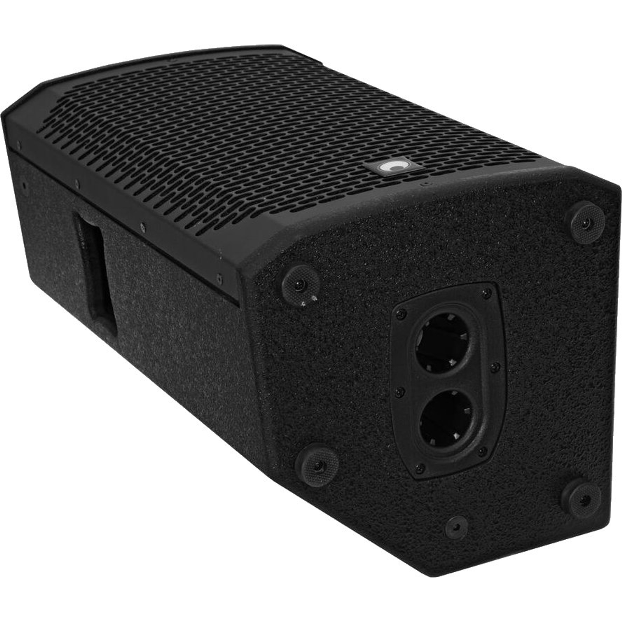 La cassa dispone di sette punti filettati M10 per il montaggio a sospensione, di una doppia flangia Ø 35 mm (0°/5°) per l'utilizzo su stativo e di un robusto cabinet in MDF con superficie strutturata e griglie metalliche rivestite internamente con schiuma acustica. Con soli 12,4 kg di peso e dimensioni compatte è sorprendentemente trasportabile - ideale per impieghi mobili e professionisti dell'evento.