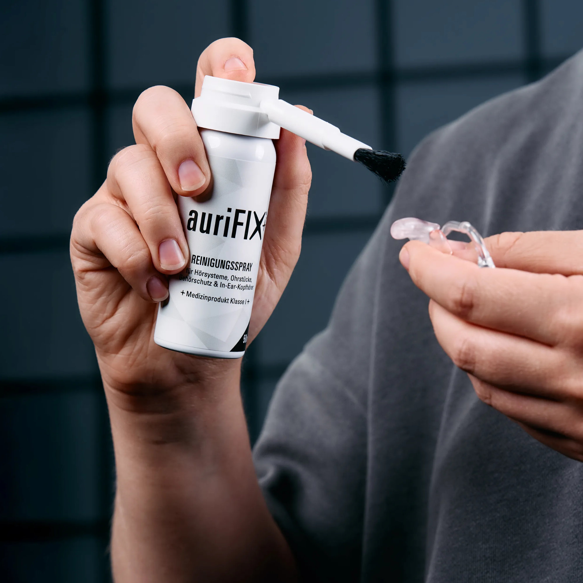 Lo spray detergente Hörluchs auriFIX è la soluzione perfetta per pulire con cura e senza problemi auricolari in-ear, protezioni acustiche e apparecchi acustici. Con la spazzola applicatrice si rimuovono igienicamente e pulitamente i depositi di sporco. Il liquido detergente evapora rapidamente e senza lasciare residui. Il pratico tappo rimovibile garantisce la sicurezza contro l’attivazione accidentale della bomboletta spray.