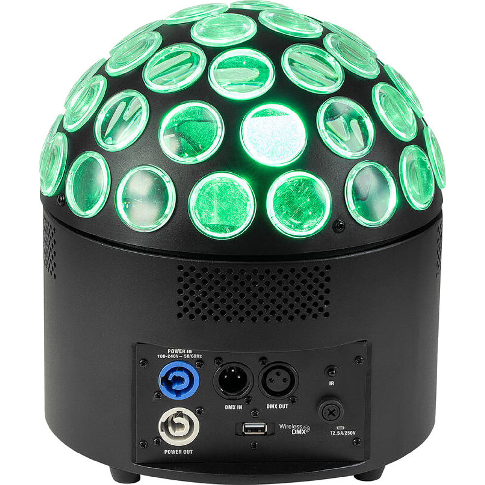 Il PowerDome 200 RGBW offre un'ampia gamma di effetti integrati, tra cui cambi colore variabili, dolci dissolvenze cromatiche, velocità e direzioni di rotazione regolabili, oltre a dinamici effetti strobe e pulse.