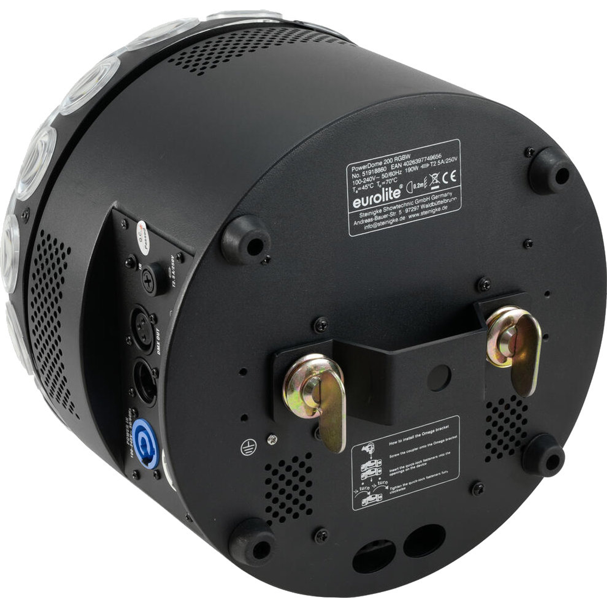 Con una potenza assorbita totale di circa 190 W, grado di protezione IP20 e ampie funzioni di sicurezza come la modalità DMX di emergenza selezionabile, il PowerDome 200 RGBW è ideale per club, scuole di ballo, matrimoni, gala, sale feste, DJ mobili, nonché per ristoranti, bar e hotel.