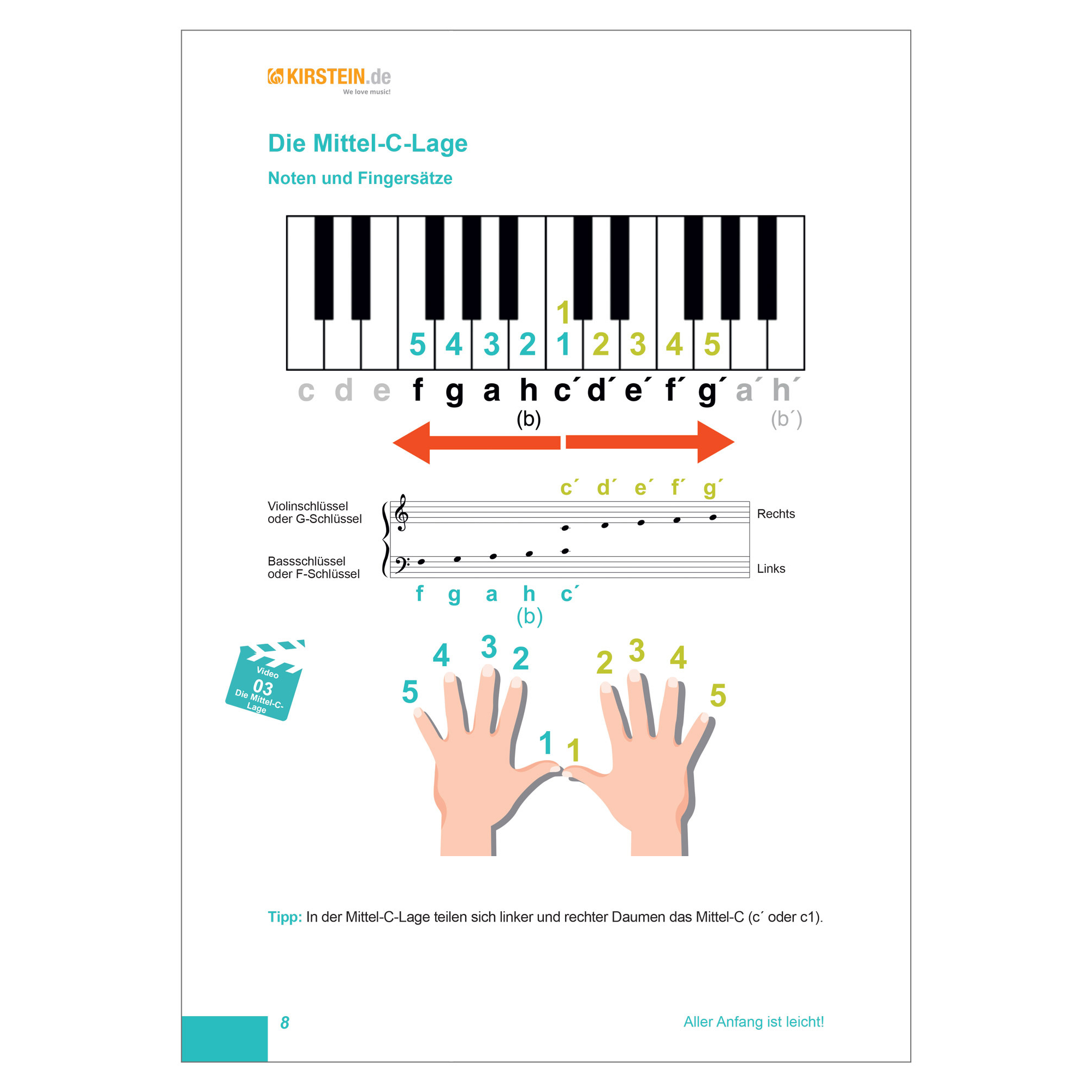 In modo giocoso e rilassato lo strumento viene presentato e spiegato al principiante. Partendo da melodie semplici e conosciute fino a suonare a due mani canzoni complete, vengono trasmesse anche nozioni teoriche. La lettura delle note, il ritmo, la dinamica e molto altro vengono trattati insieme agli esercizi. Inoltre, gli esercizi semplici garantiscono un rapido successo nell'apprendimento.