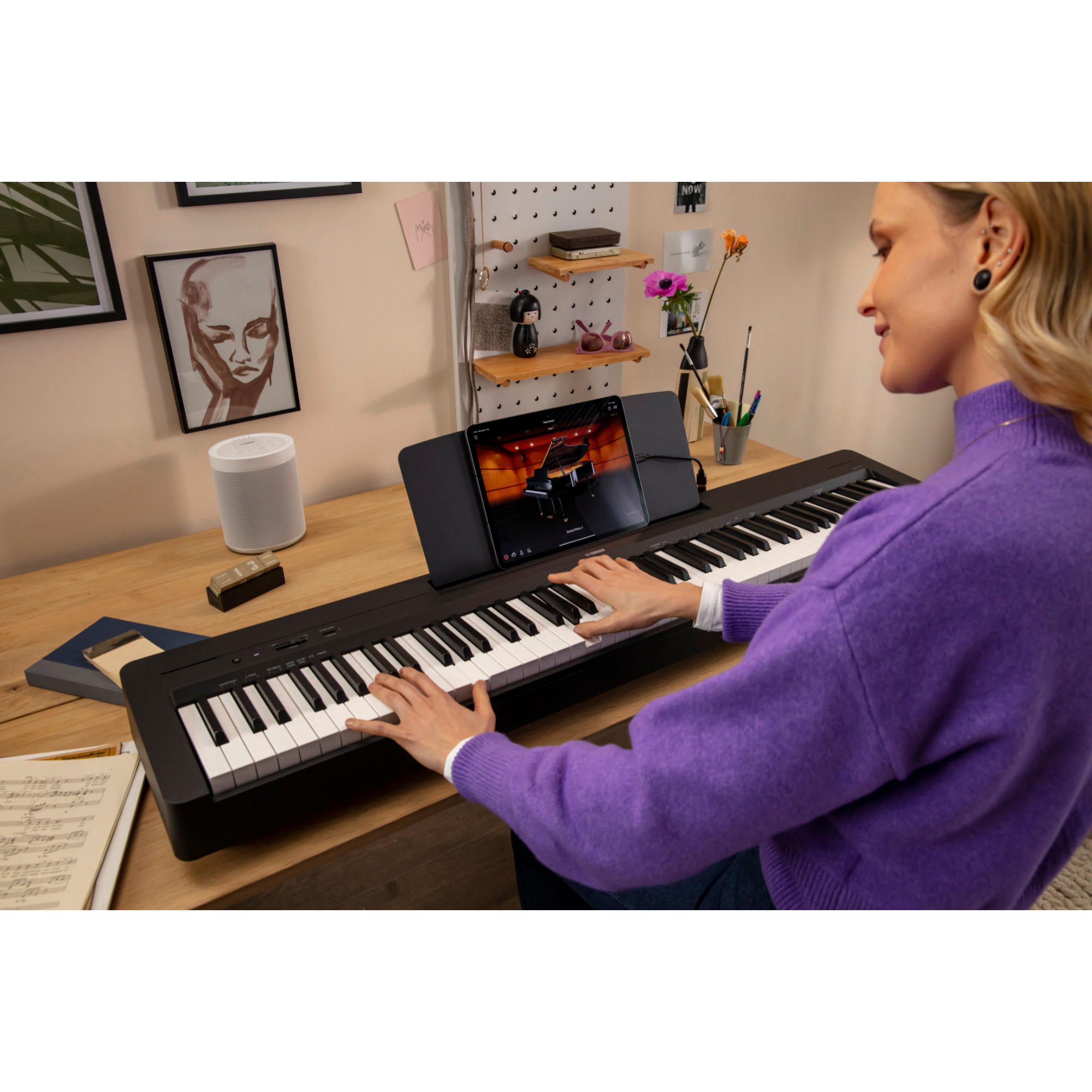 Uno dei maggiori vantaggi di un digital piano è che puoi esercitarti senza disturbi e ascoltare il tuo suono solo tramite cuffie. Allo stesso tempo, nessun familiare o vicino sarà disturbato dal volume. Il P-145BT è inoltre dotato di un metronomo perfetto per la pratica. Con queste funzioni puoi suonare al tuo ritmo, quando vuoi.